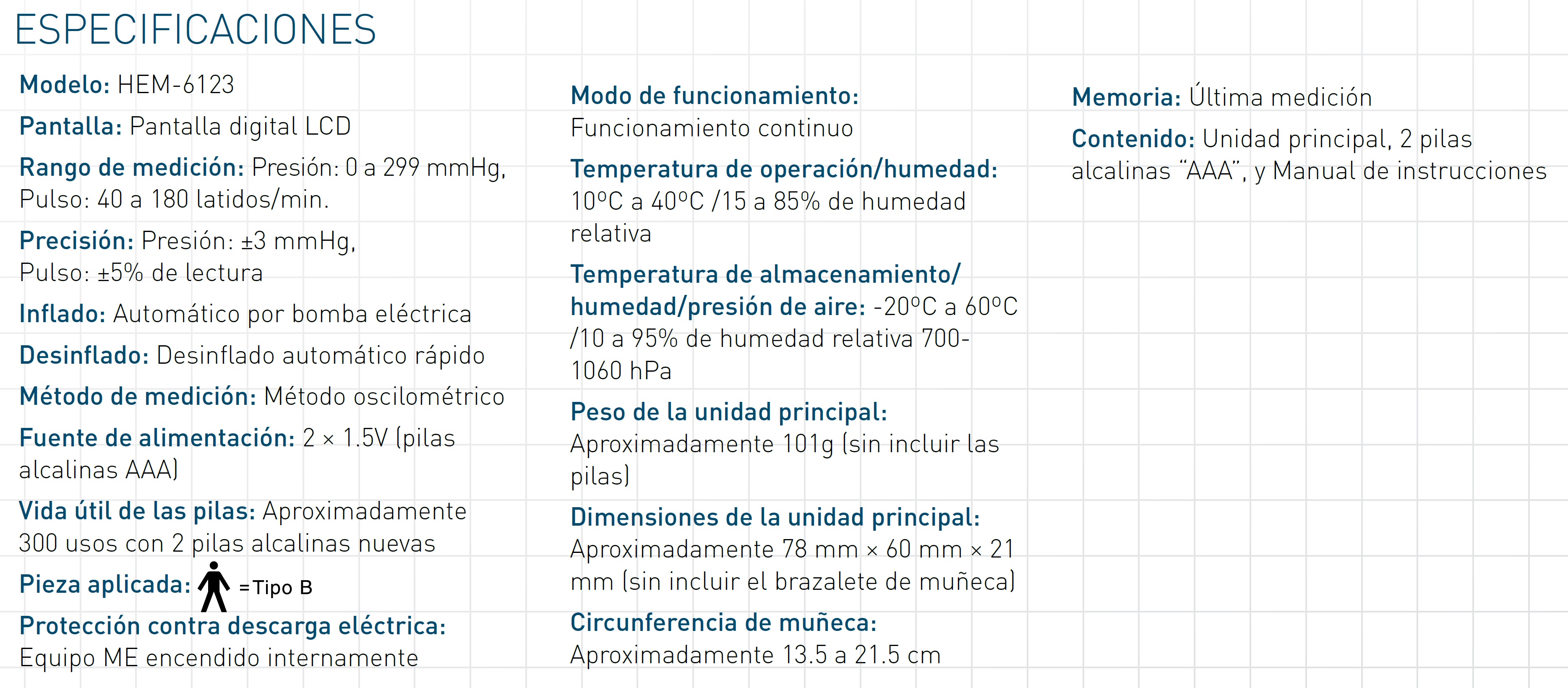 MEMORIA: El HEM-6123 almacena en memoria la última medición.