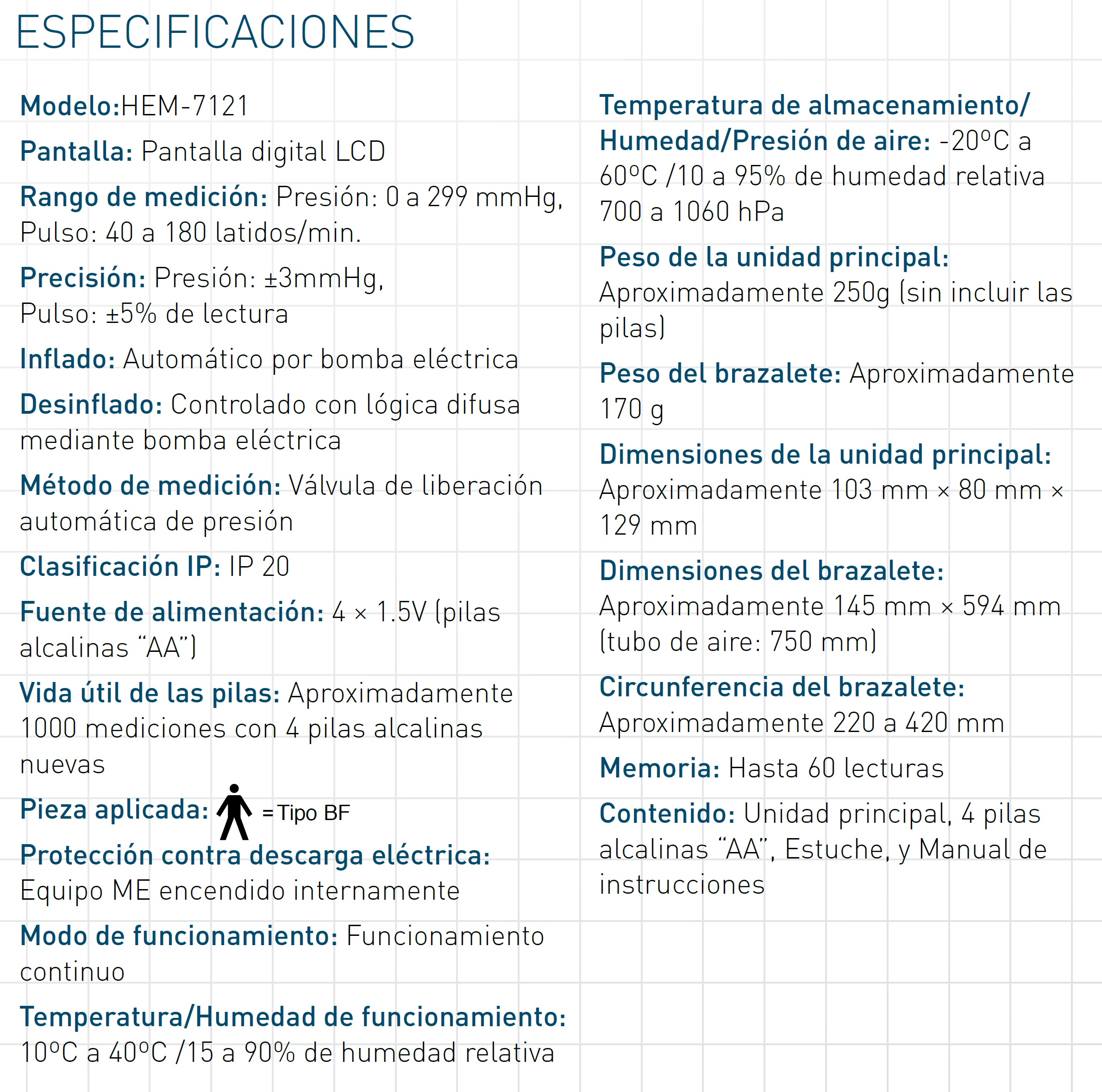 30 MEMORIAS CON FECHA Y HORA: El HEM-7121 almacena las últimas 30 mediciones, lo cual permite al usuario encontrar previas mediciones con facilidad y monitorear cambios en la presión arterial.