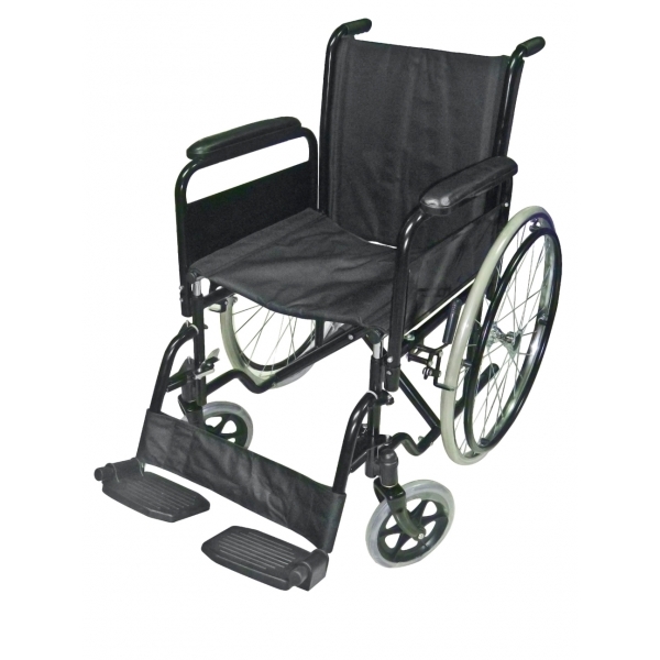 Silla de ruedas estándar, esmaltada, asiento de lona, rueda maciza, color negro.
